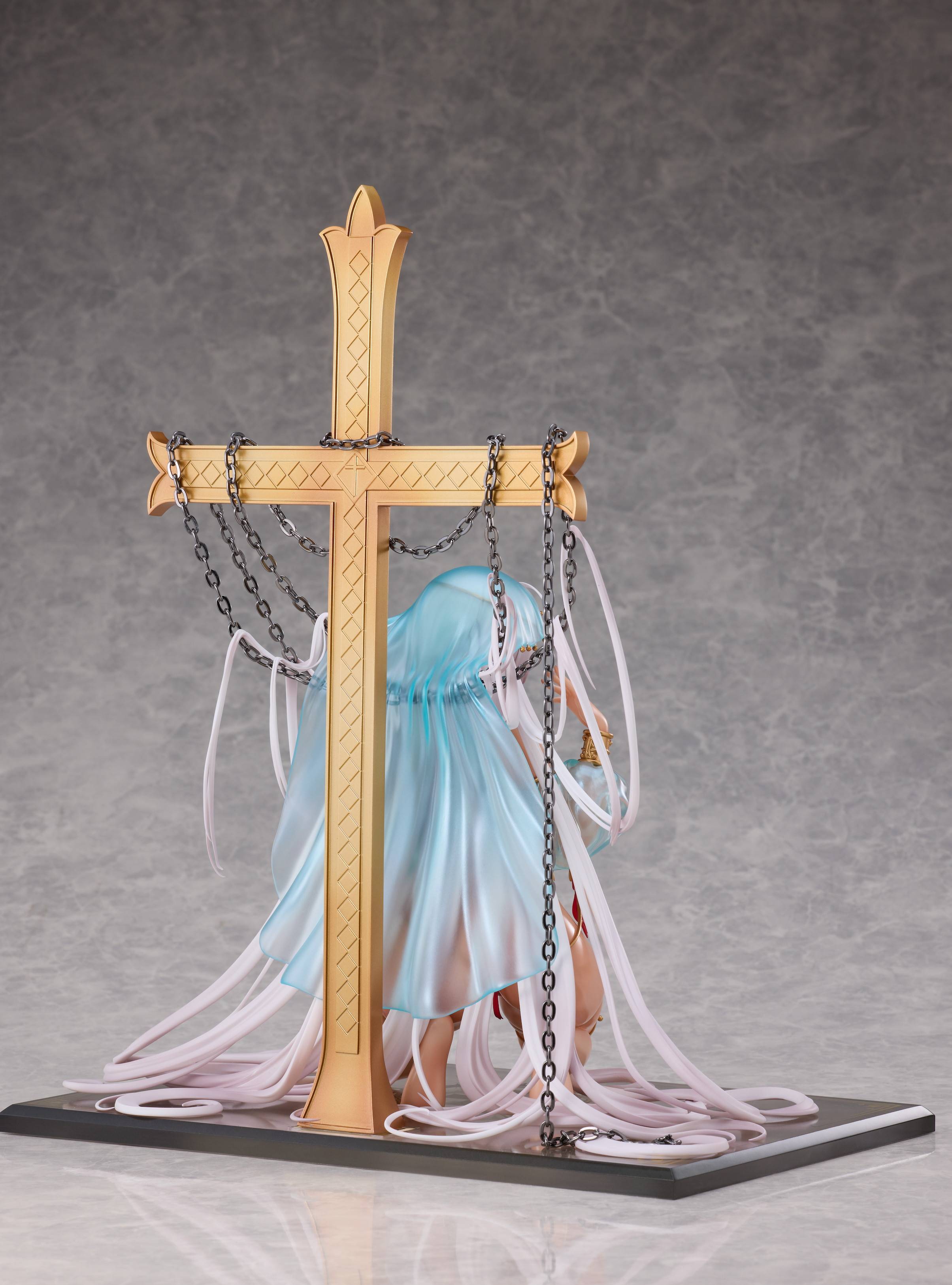 The large cross and chain elements behind her are carefully sculpted to deepen the mood of the scene, creating a display that is captivating from every angle.