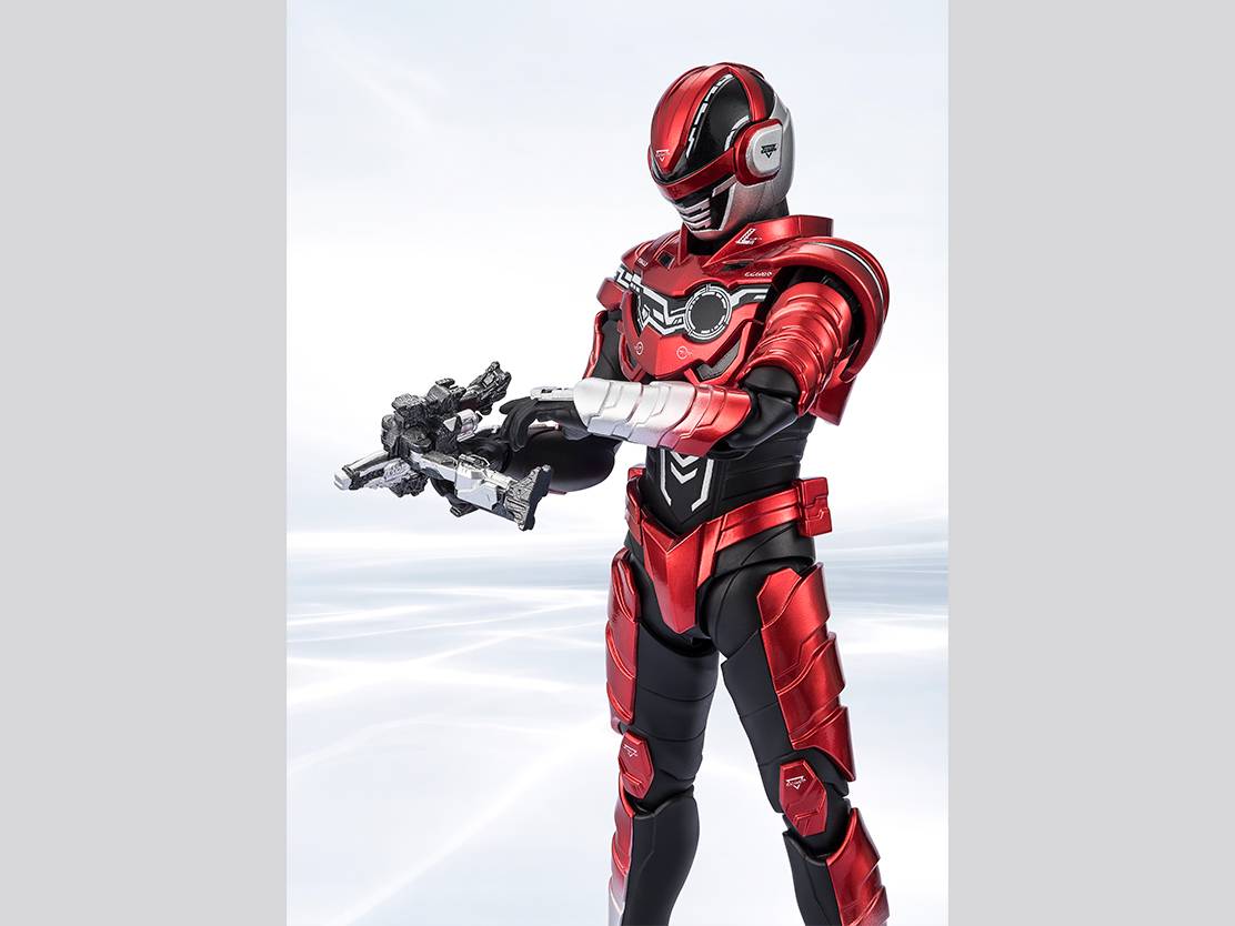 The sculpt emphasizes the natural body line from chest to waist, enhancing both realism and poseability. The red and silver metallic finish across the armor captures the texture and sheen seen on screen. The Gavallion Trigger, which functions as both transformation device and weapon, is included, and the Emolgear is detachable. The blade of the Gavallion Blade is crafted with clear material for added visual impact. An opened Galactic Federation Police badge is also included. Continue building your collection as the Super Space Sheriff Gavan Infinity series expands.