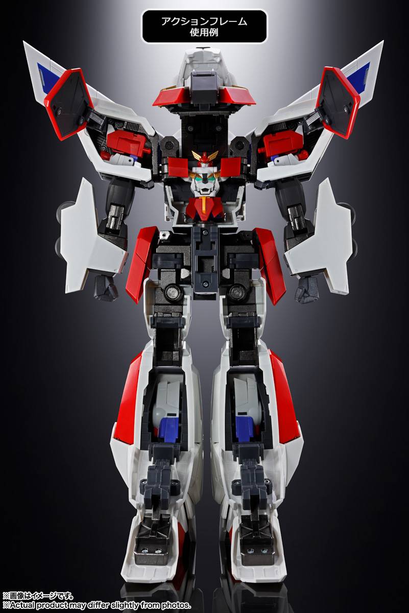 SOUL OF CHOGOKIN also delivers an impressive large-scale combination and a unique interpretation of KING RODER. The Form-Up Frame unfolds at the front to store EXKAISER, while switching to the Action Frame allows KING EXKAISER to wield the Kaiser Sword and recreate powerful signature attacks such as Kaiser Flame and Thunder Flash.